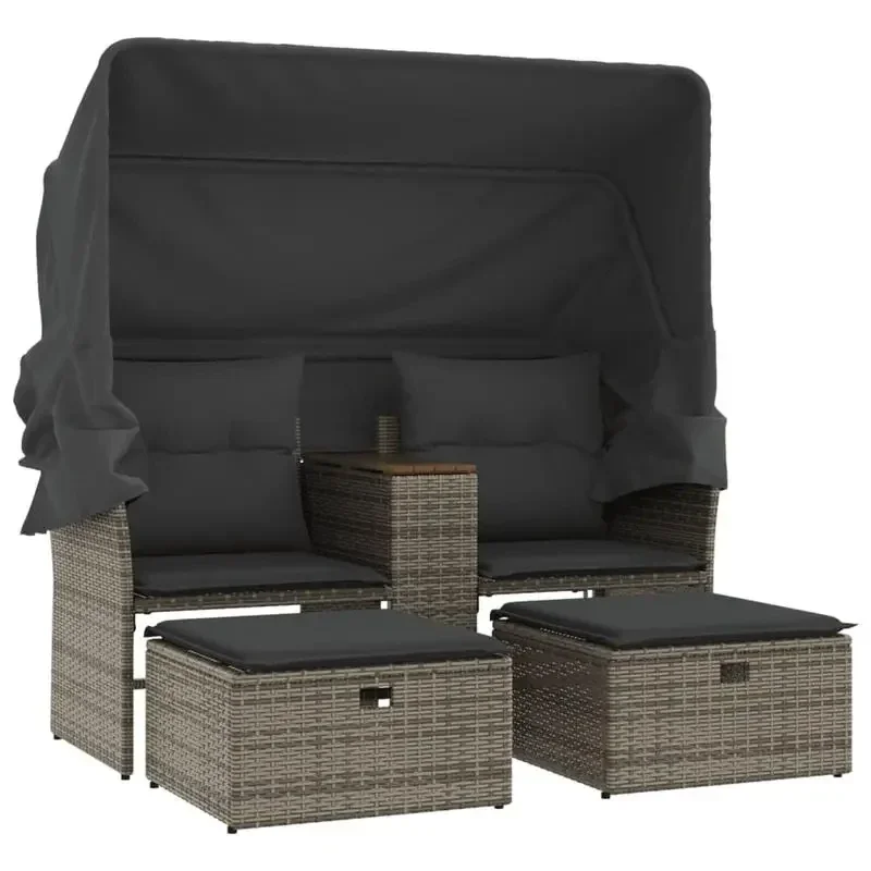 Tuinbank 2-zits met luifel en voetensteunen, poly rattan grijs